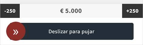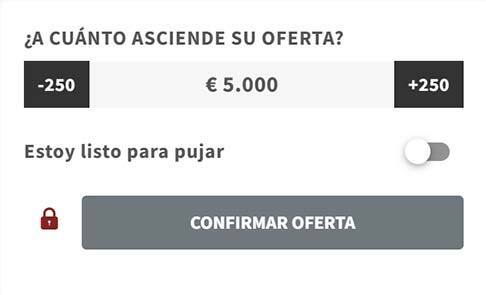Los incrementos de puja son hasta un precio de 10.000 EUR de 250 EUR cada uno,
